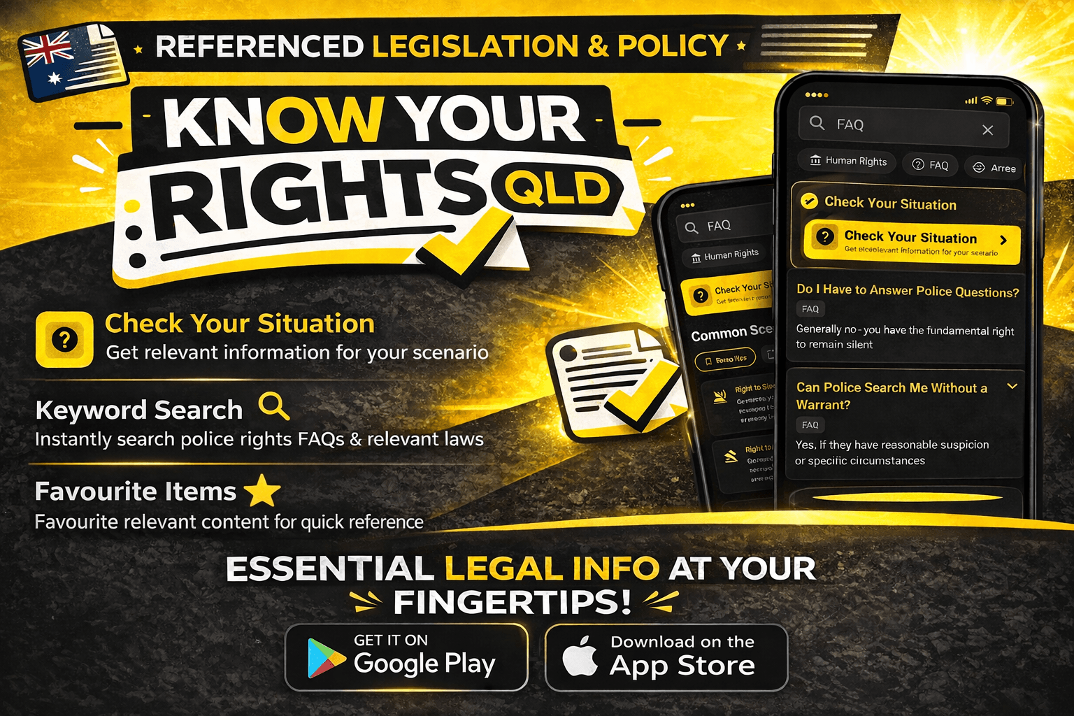 Know Your Rights QLD is a practical, easy-to-use mobile tool designed to help you quickly understand how Queensland law may apply during common interactions with police. The app provides clear, plain-English legal information across a range of real-world scenarios, including traffic stops, questioning, searches, arrests, and other day-to-day situations.